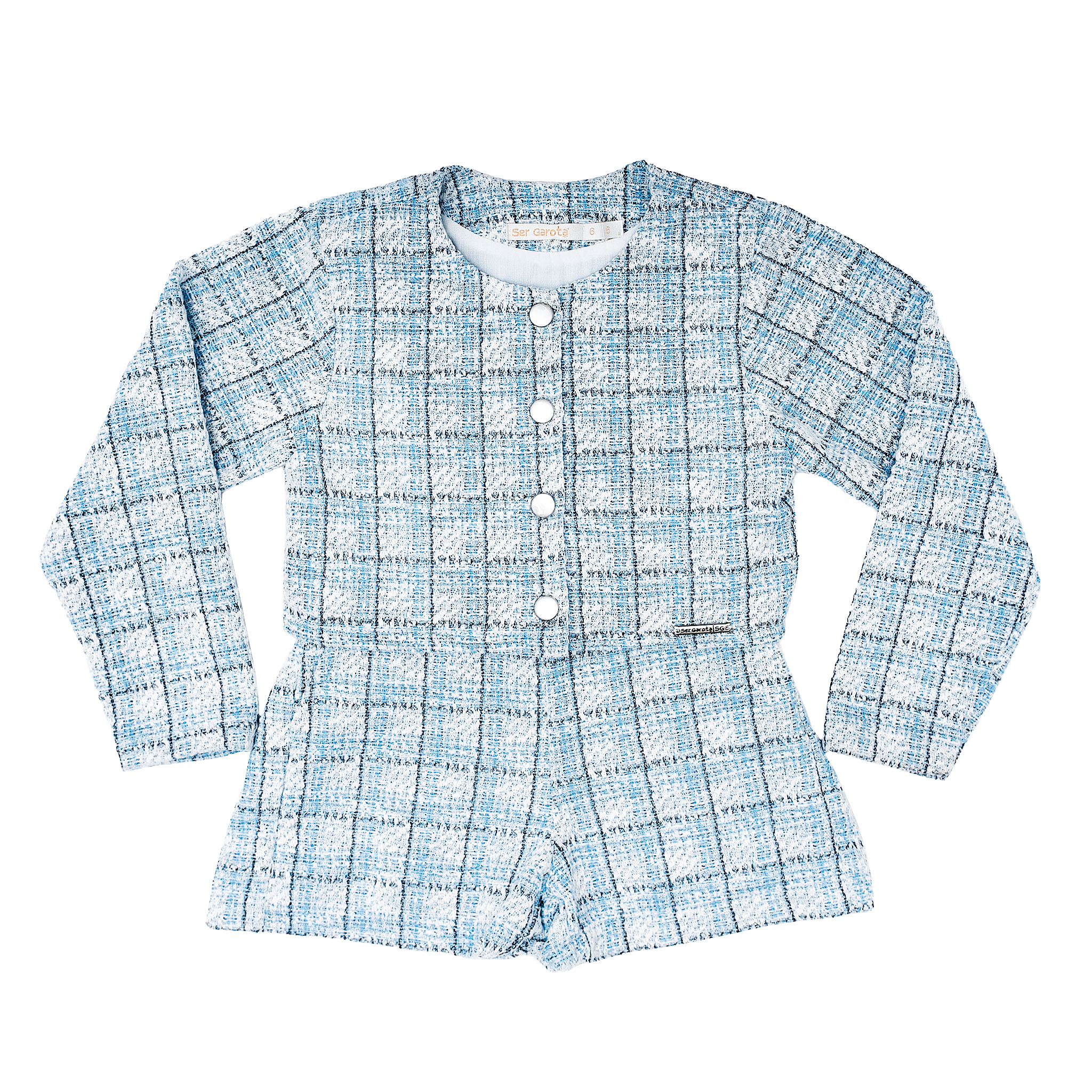 CONJ BLUSA CASACO E SHORTS DE TWEED