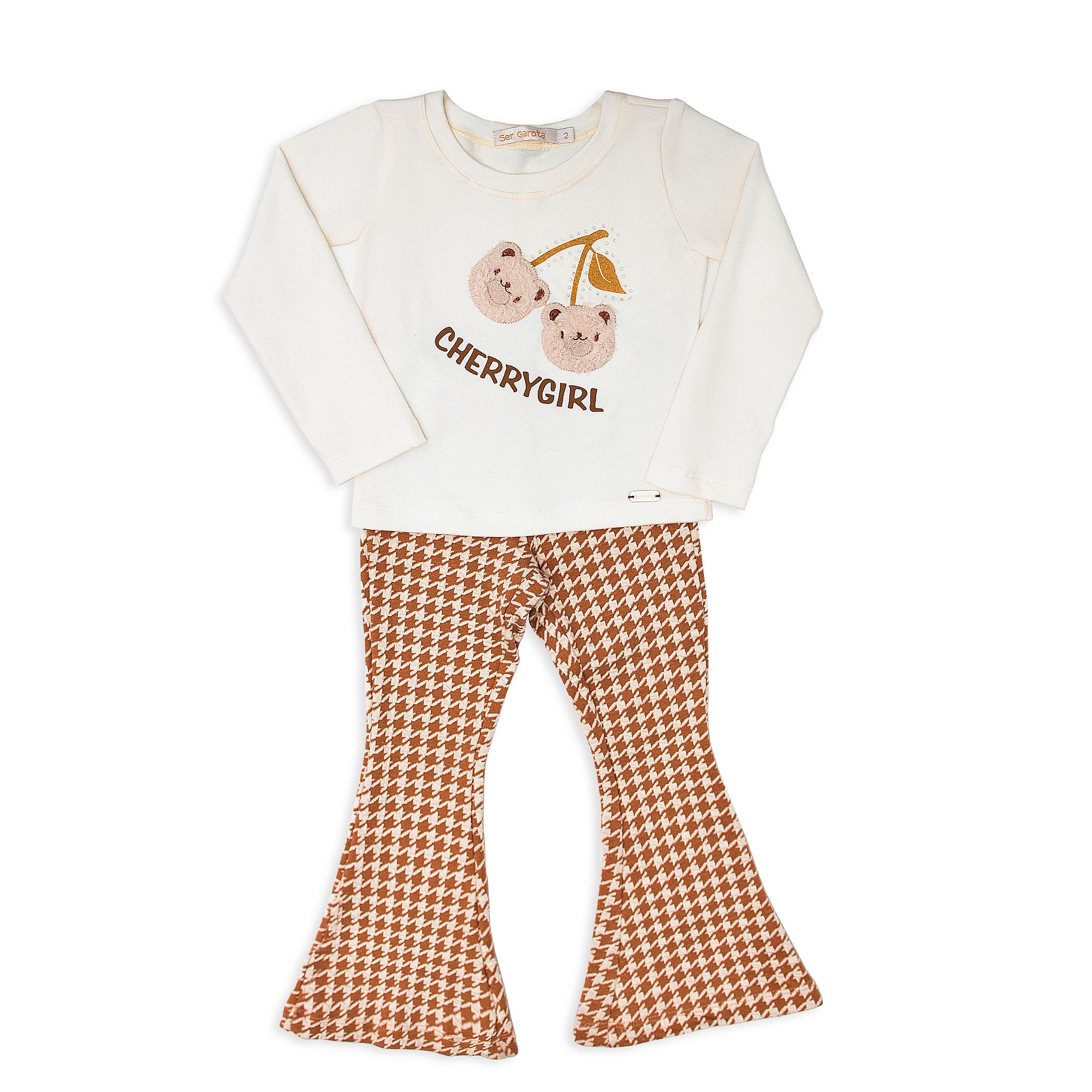 CONJ CALÇA FLARE COM BLUSA COTTON CHERRY
