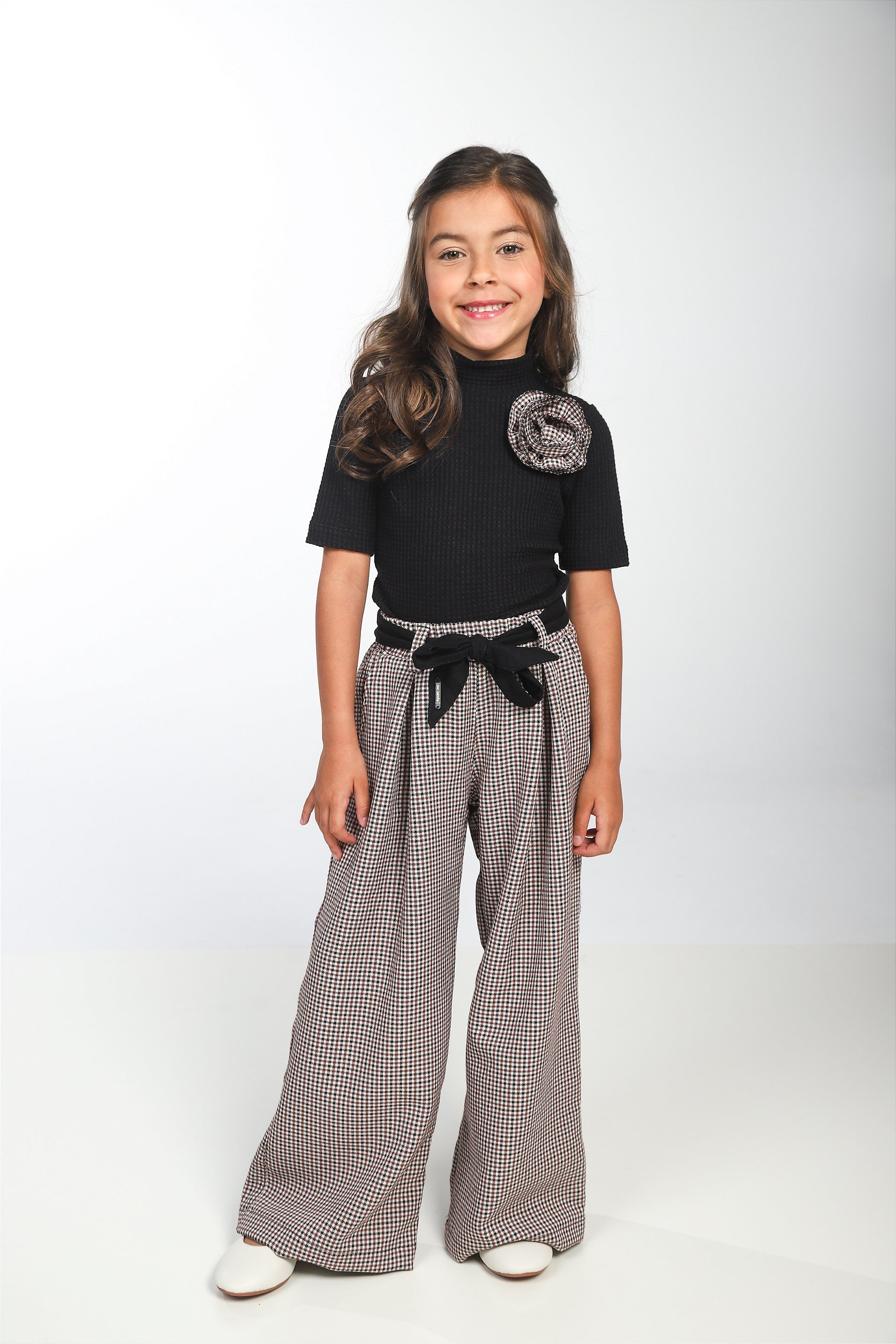 CONJ CALÇA PIEDE DE POULE COM BLUSA DE ROSA