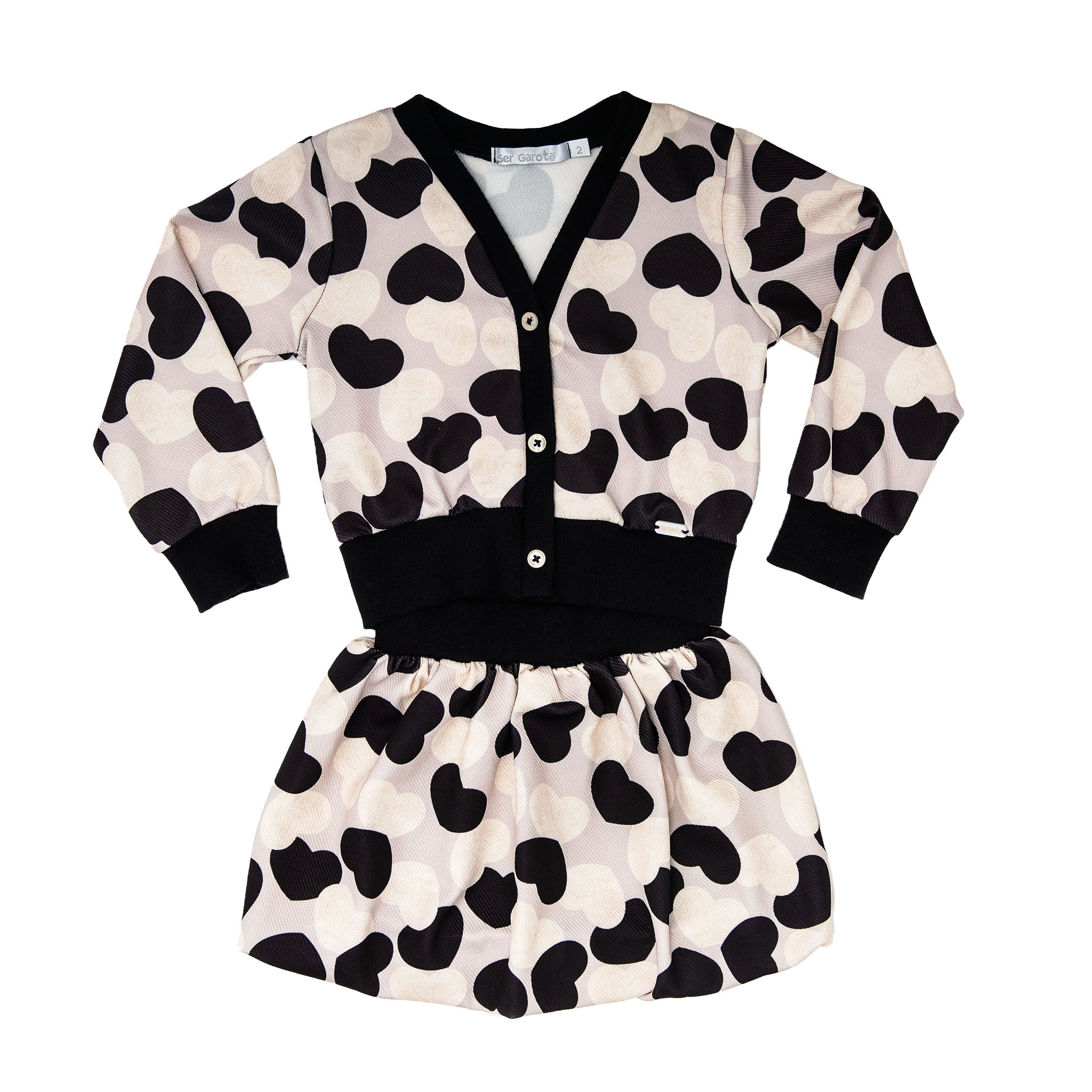 CONJ CARDIGAN DE MALHA E SAIA BALONÊ CORAÇÃO