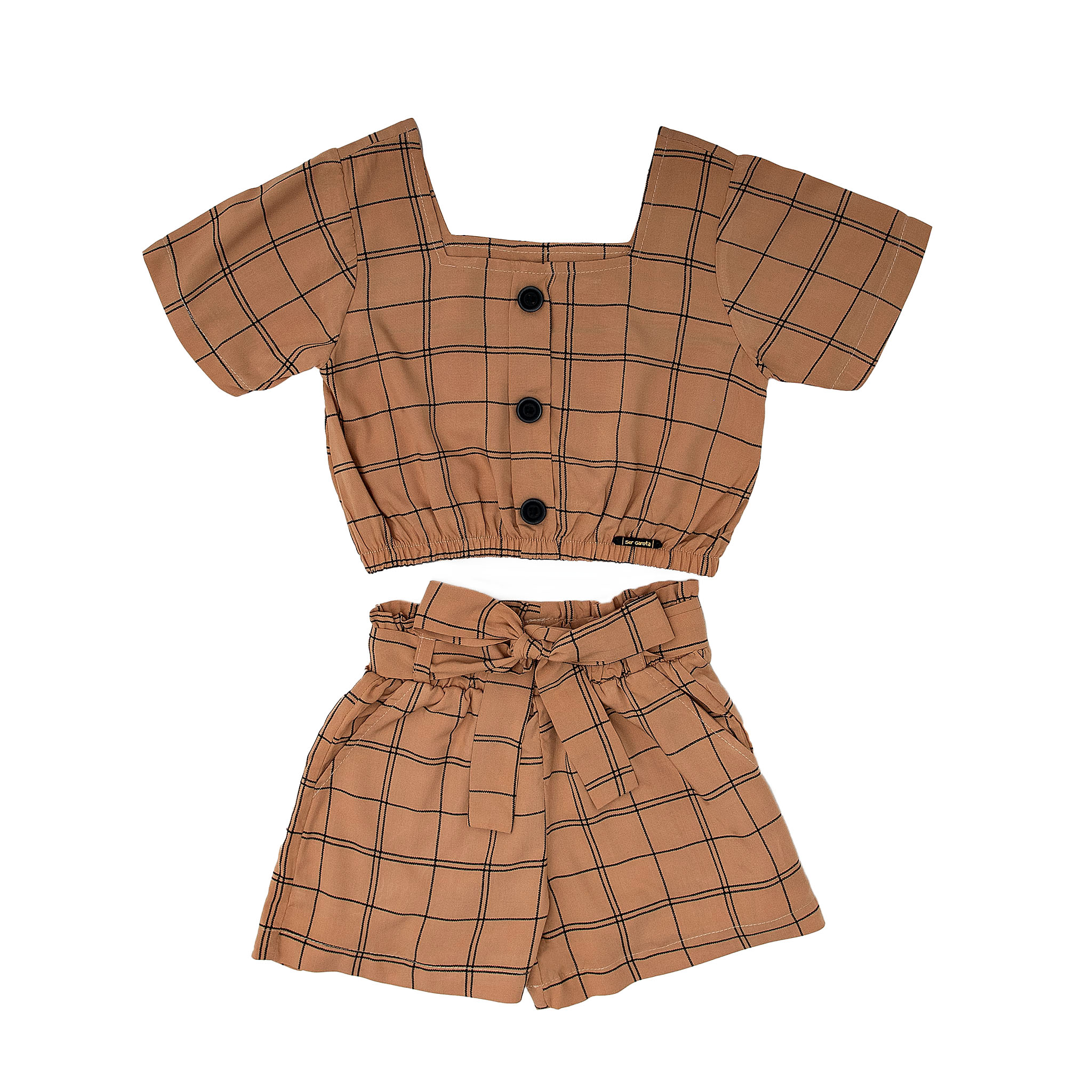 CONJ CROPPED E SHORTS VISCOSE XADREZ