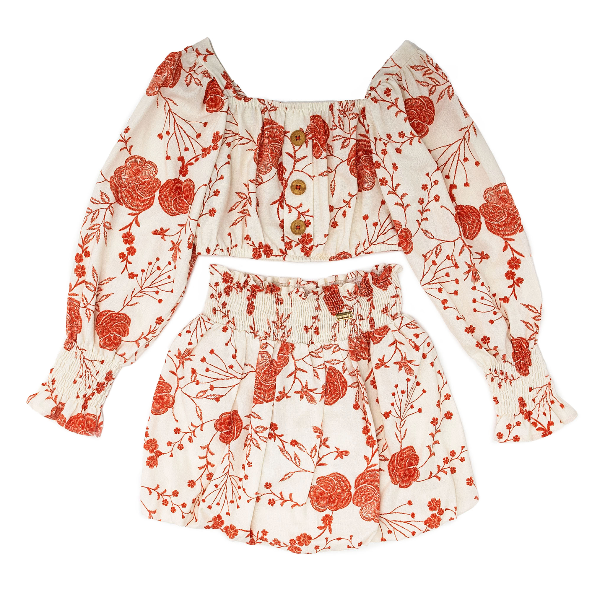 CONJ FLORIDO SAIA BALONÊ COM BLUSINHA