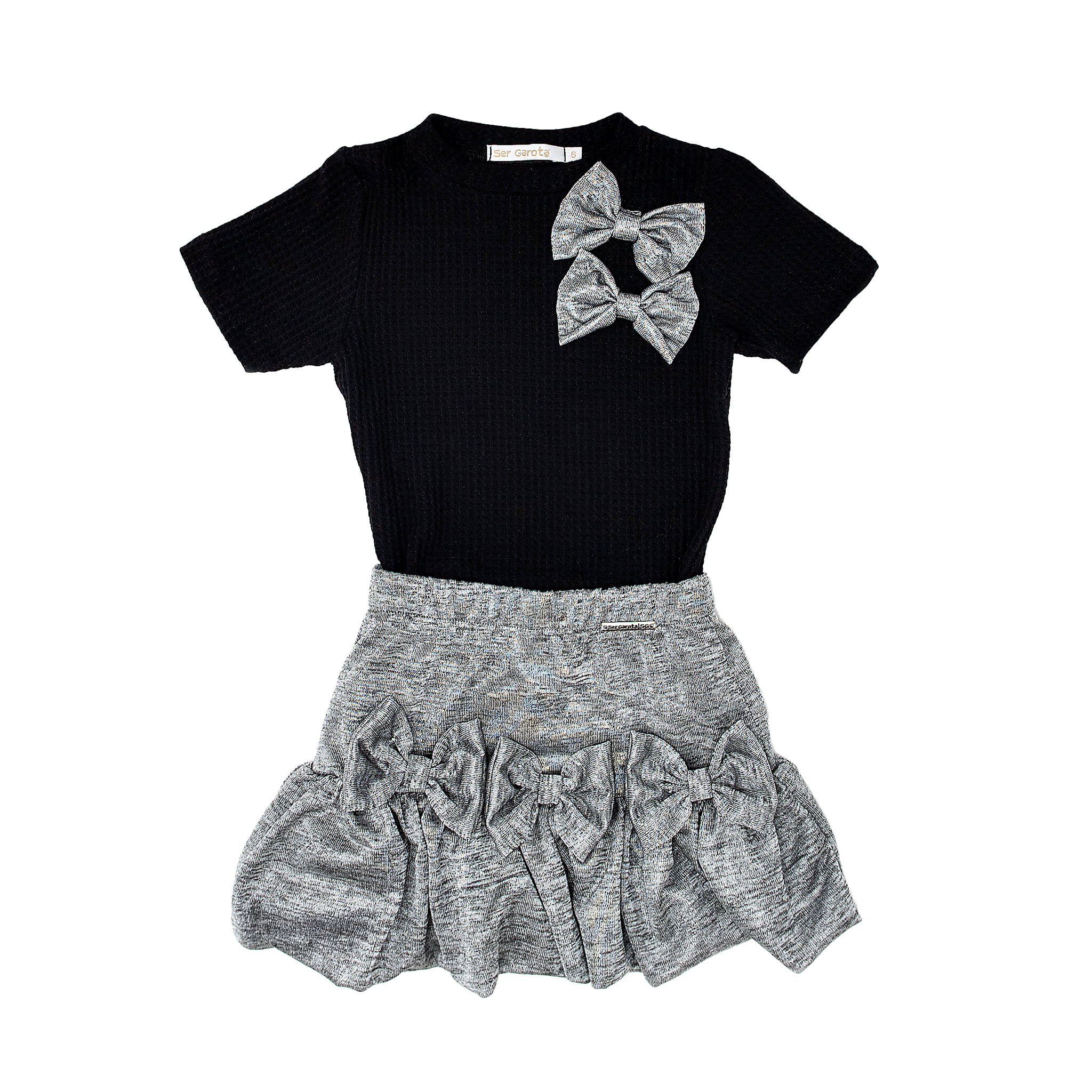 CONJ SAIA BALONÊ E BLUSINHA MALHA COM LAÇO
