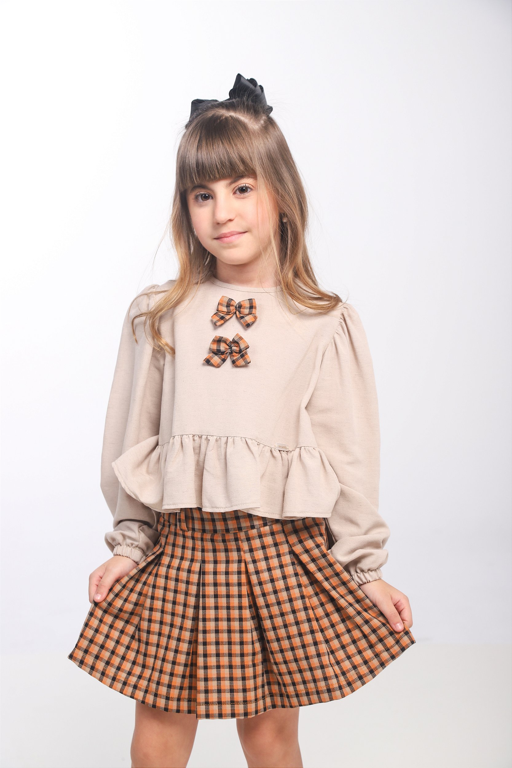 CONJ SAIA XADREZ PREGAS E BATA COM LACINHOS