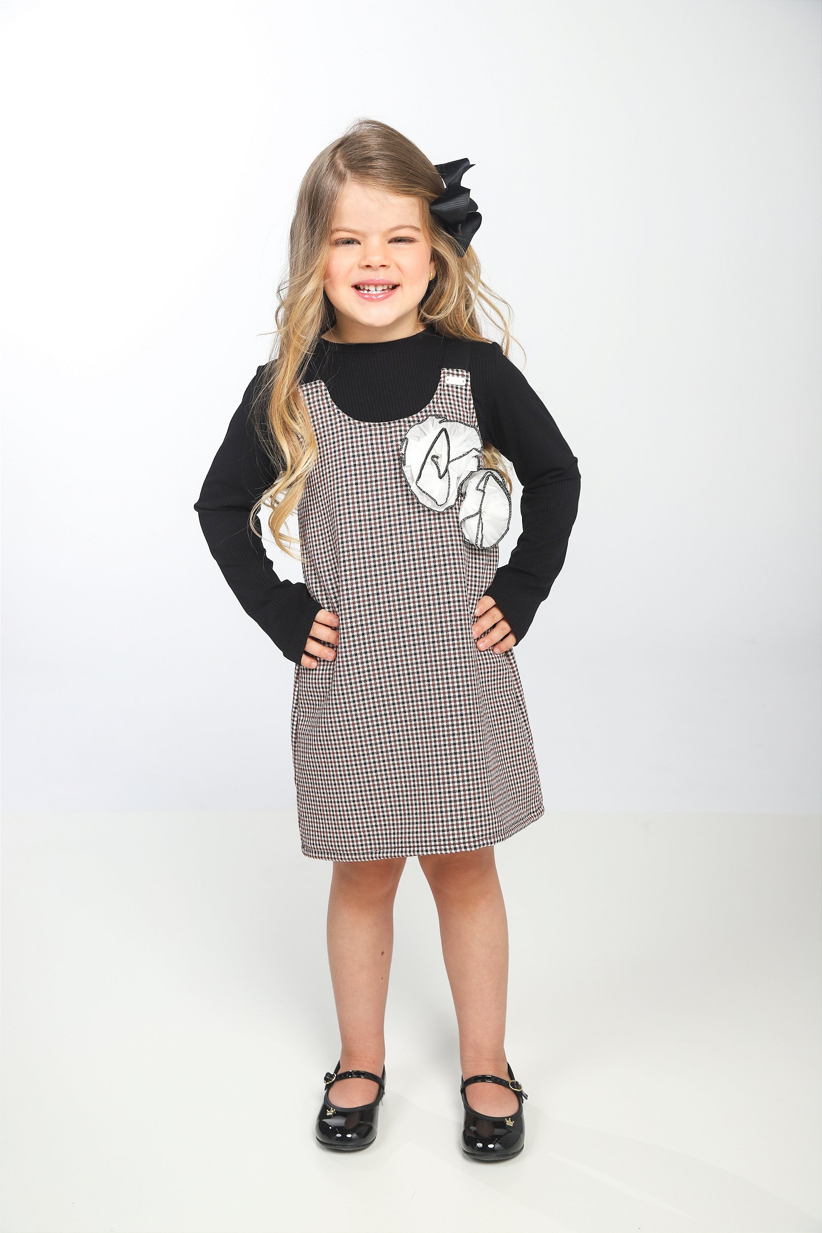 CONJ VESTIDO XADREZ COM BLUSA DE MALHA