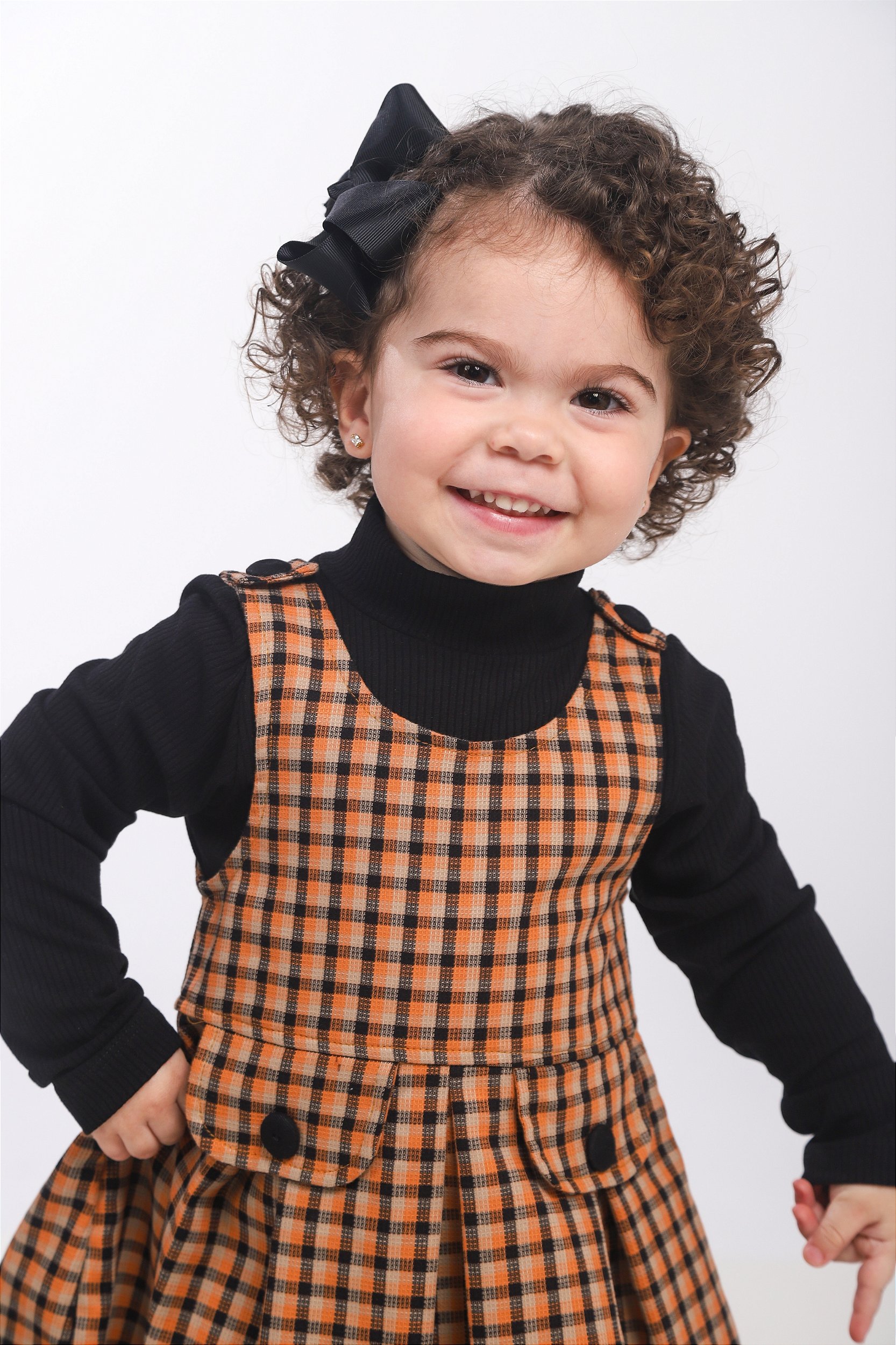 CONJ VESTIDO XADREZ COM PREGAS E BLUSA CANELADA