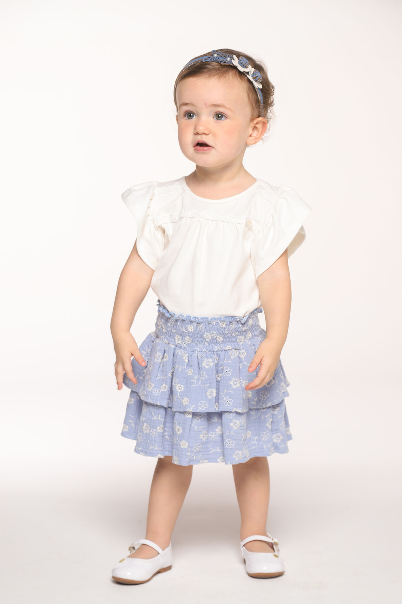 Conjunto blusa cotton e saia tricoline bordado