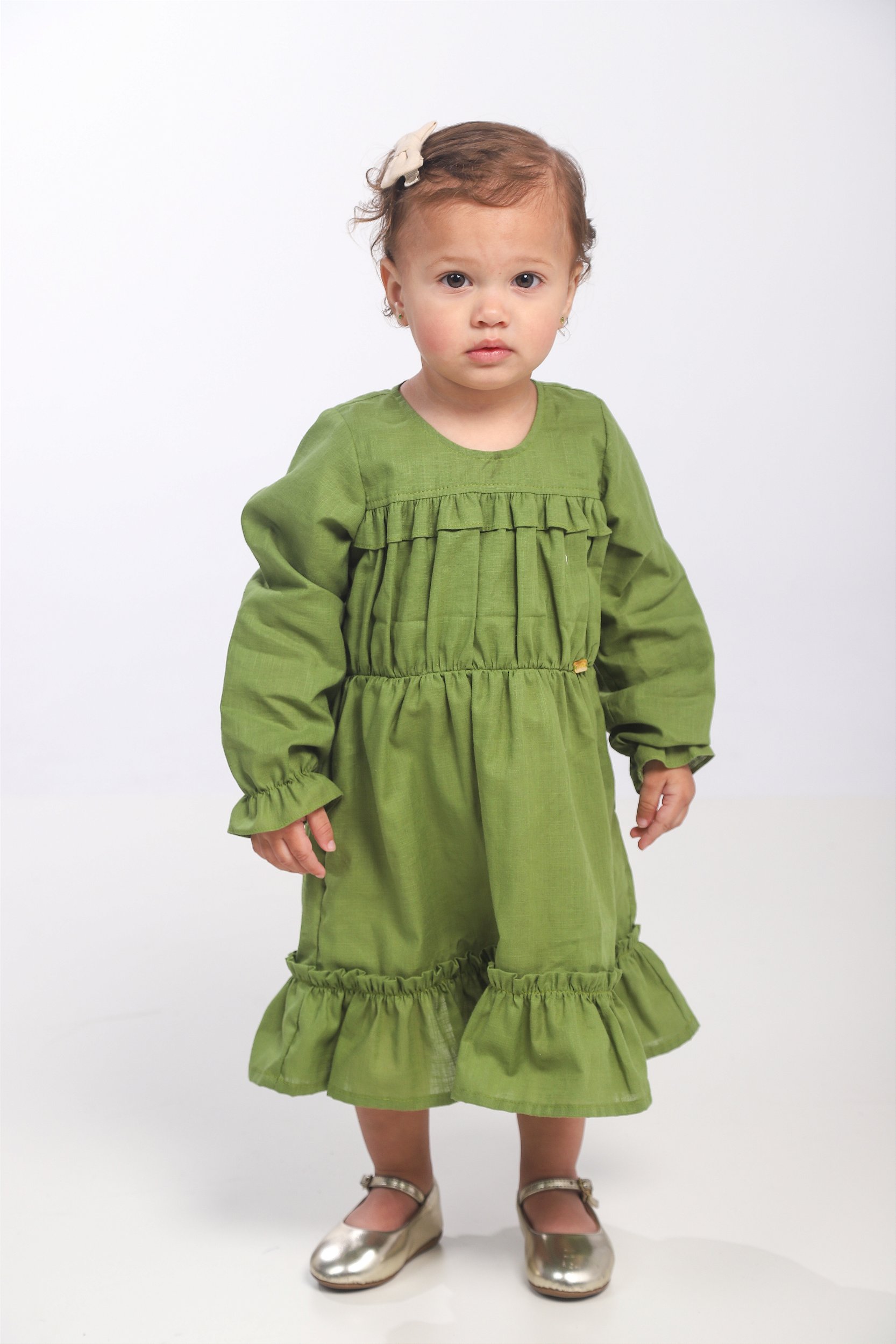 VESTIDO COM PREGA E BABADO
